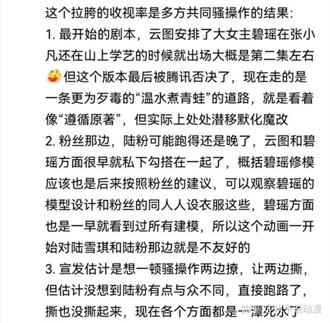 根据一些网友的爆料来看,官方在《诛仙》动漫开播之前就已经开始为碧瑶造势,先是和碧瑶粉丝讨论模型,然后又是给碧瑶各种加戏,甚至还不惜魔改剧情和设定也要给碧瑶足够的剧情,尤其可见《诛仙》动漫其实早就夹带私货了。