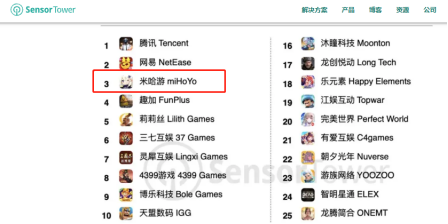 Sensor Tower数据统计,米哈游现在已经成为国内继腾讯和网易之后的第三大游戏公司。