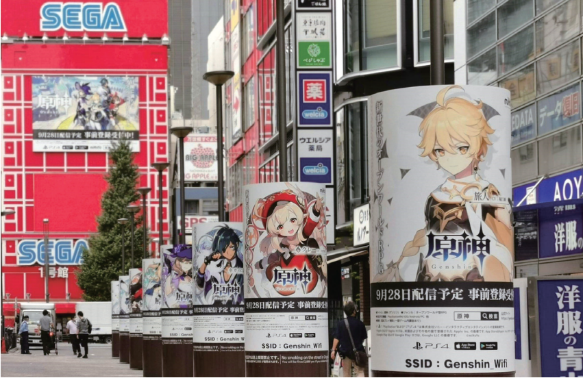 米哈游在日本各大城市投放《原神》广告