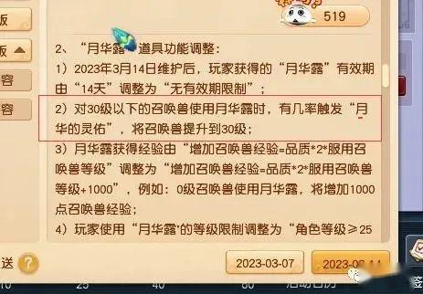 场景玩法调整,同时推出了月华露加灵佑功能,一方面回收梦幻币,二是打击场景商人高价的胚子,降低炼妖成本,实现全民炼妖,激活兽决等流通市场,稳定金价,这是开源。