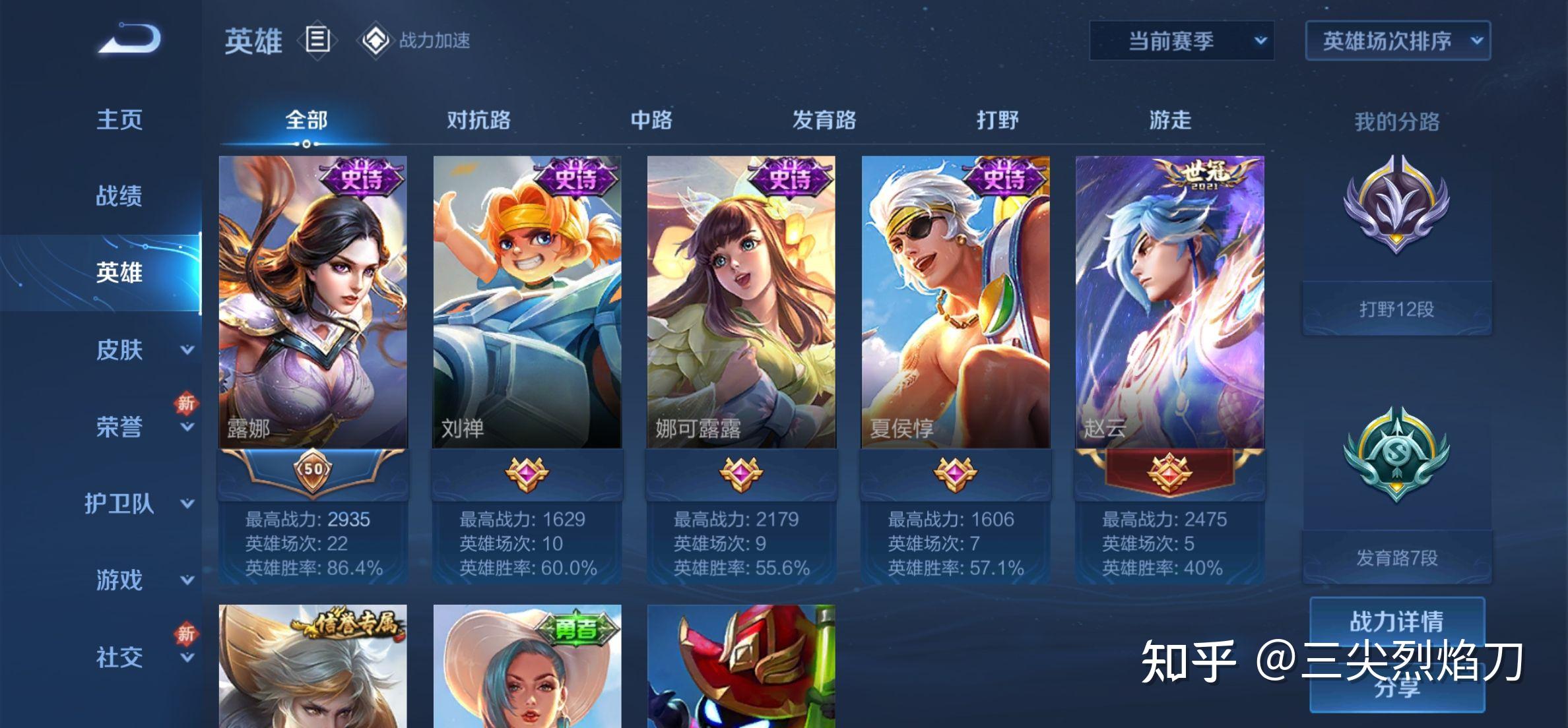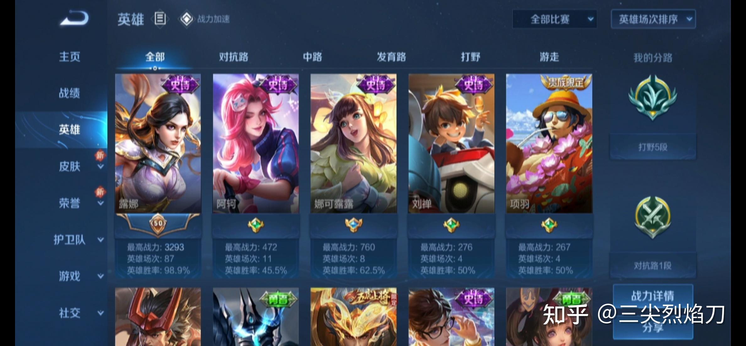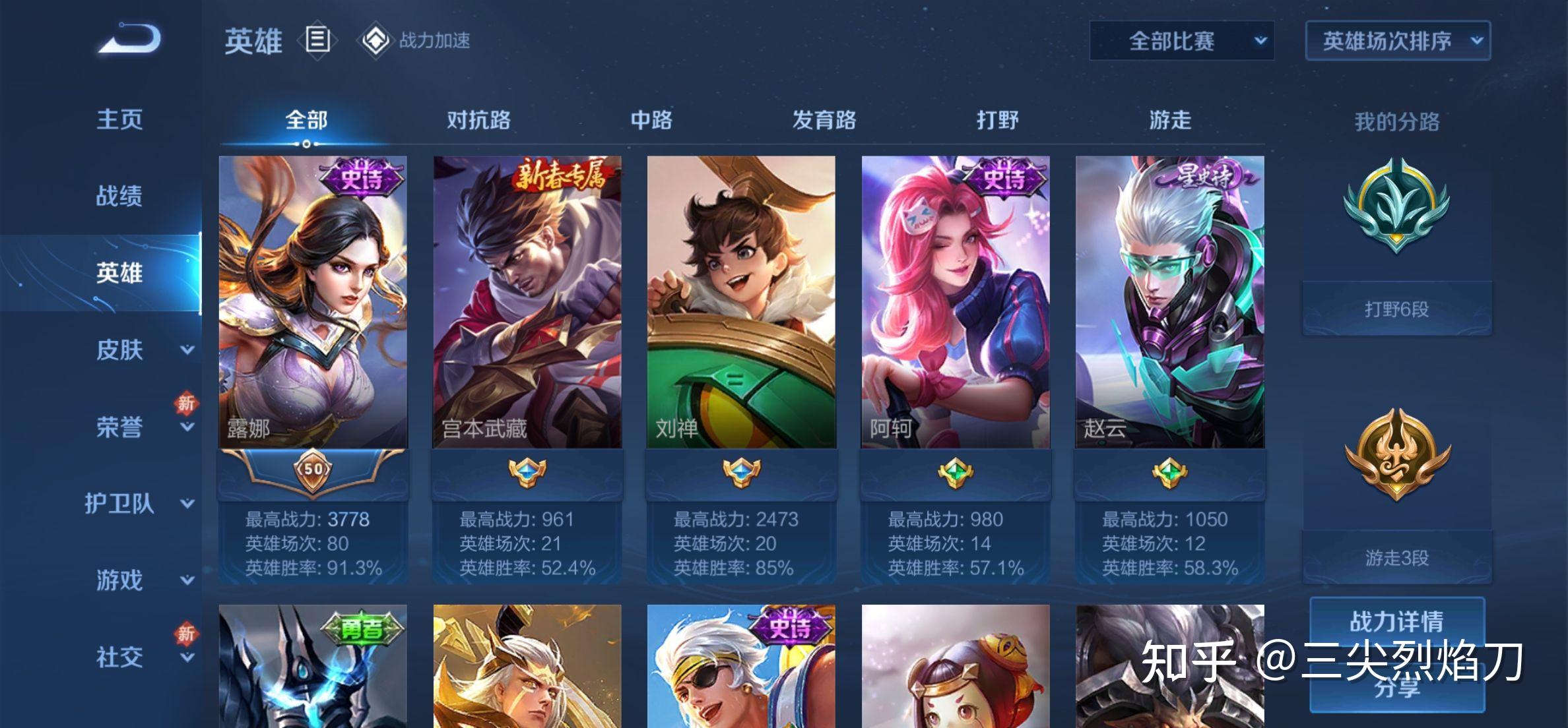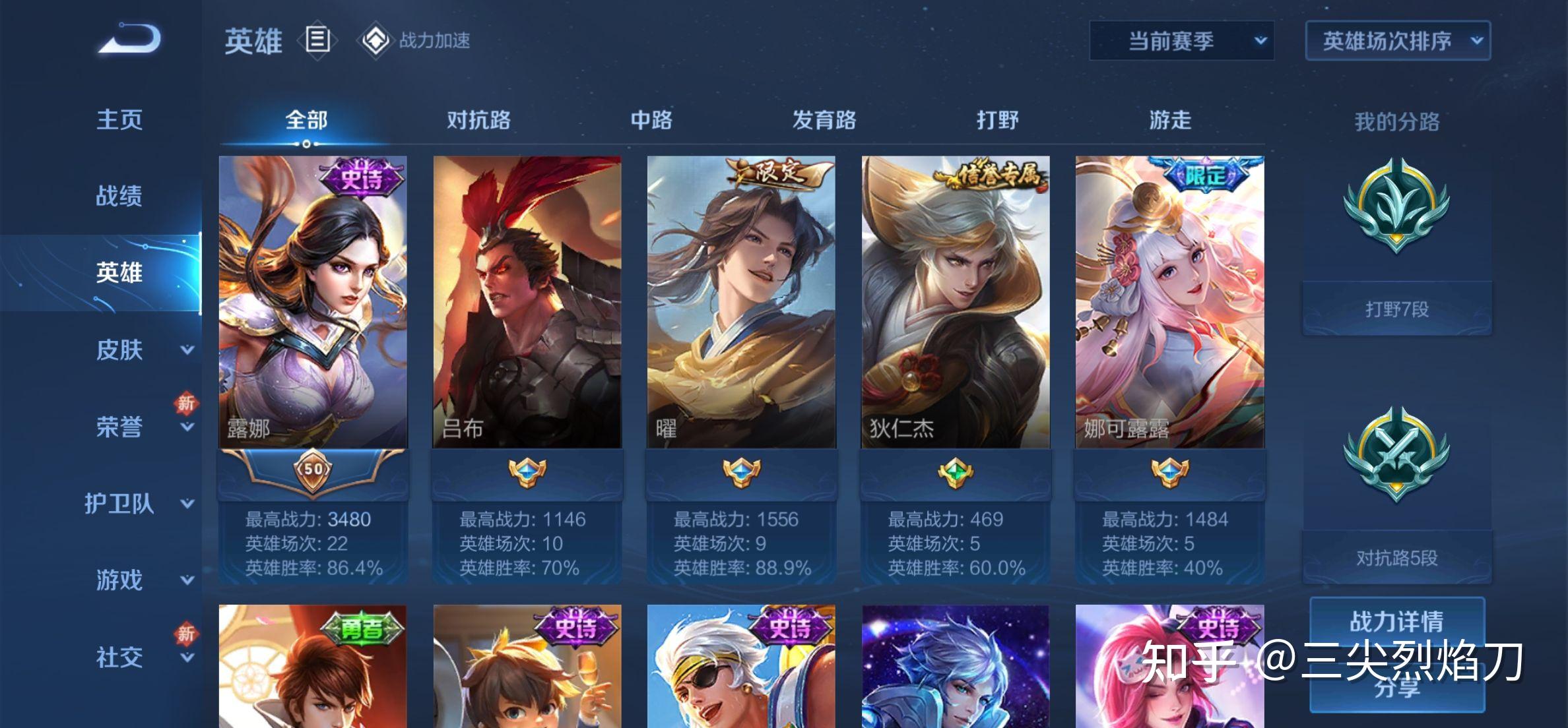 过去一年自己用这个方法,已经单排上了好多好多分了,赛季每个号都能打到王者,场次少还不累,英雄胜率越来越高(测试用新号的露娜单排87场胜率有98.9%)。