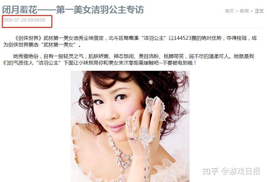 这个帖子有“一定的年代感”了。它是2009年间,一则经典武侠网游玩家剑侠世界的采访。内容也很有那个时代的特点,当然了,最重要的还是那个采访的标题足够吸引游戏日报君的眼球“闭月羞花,第一美女洁羽公主专访”。